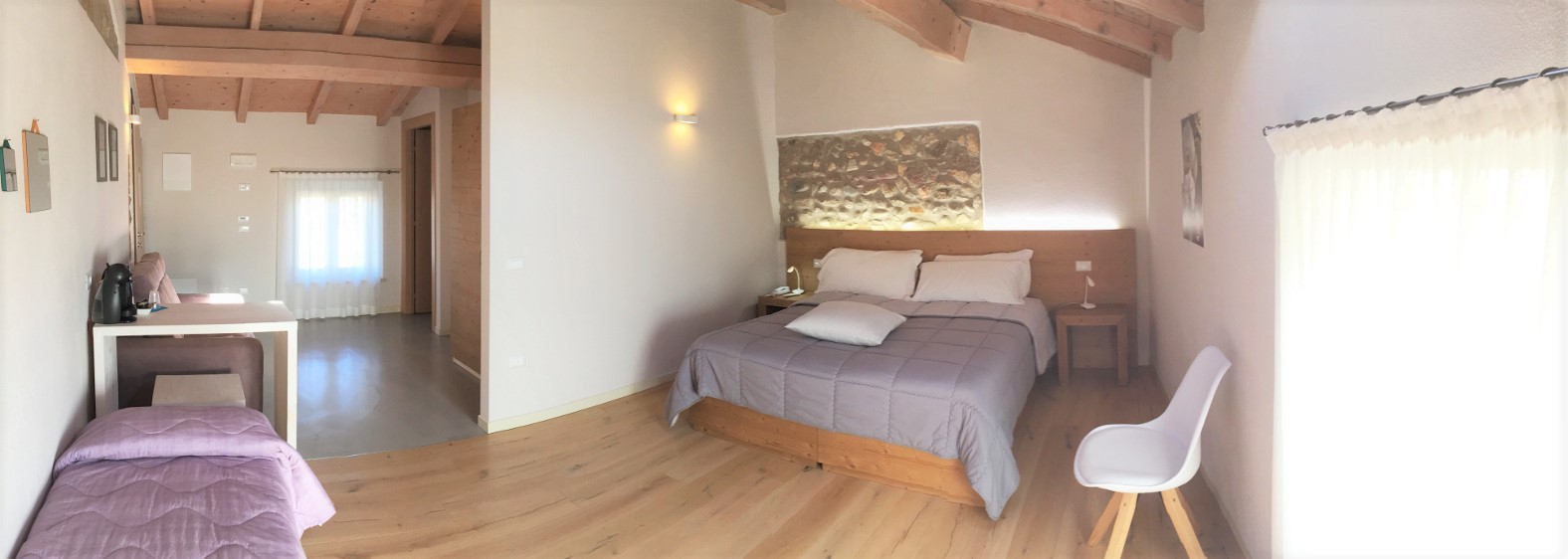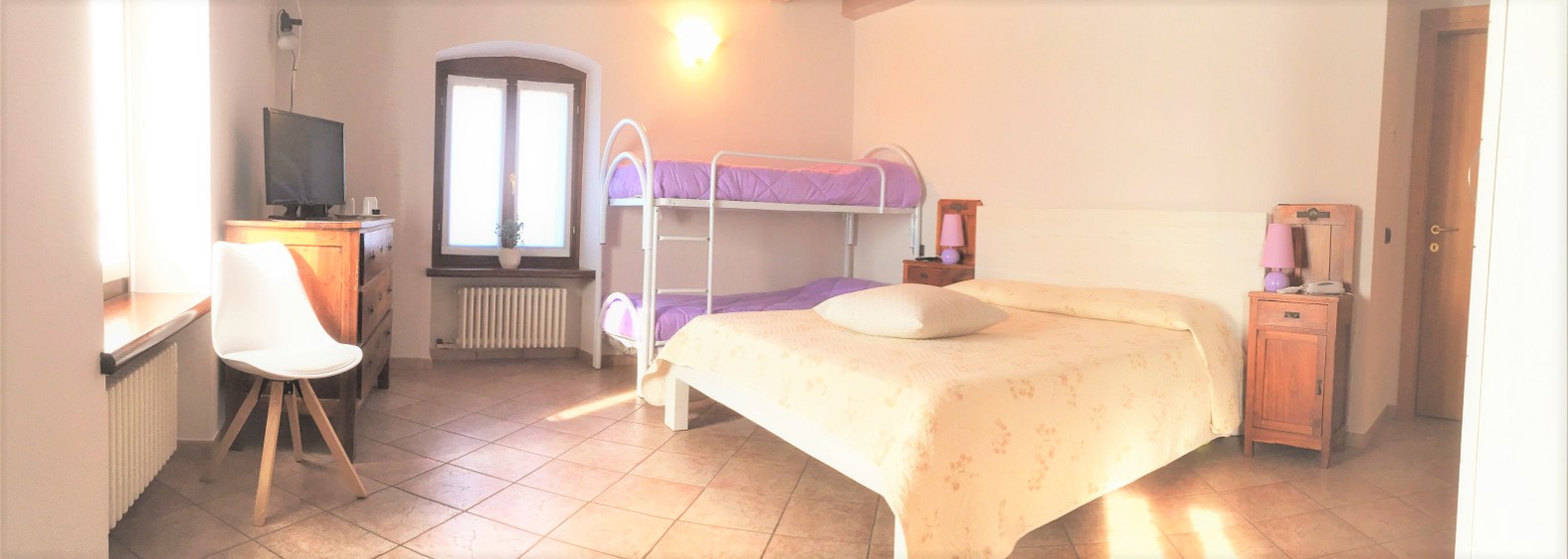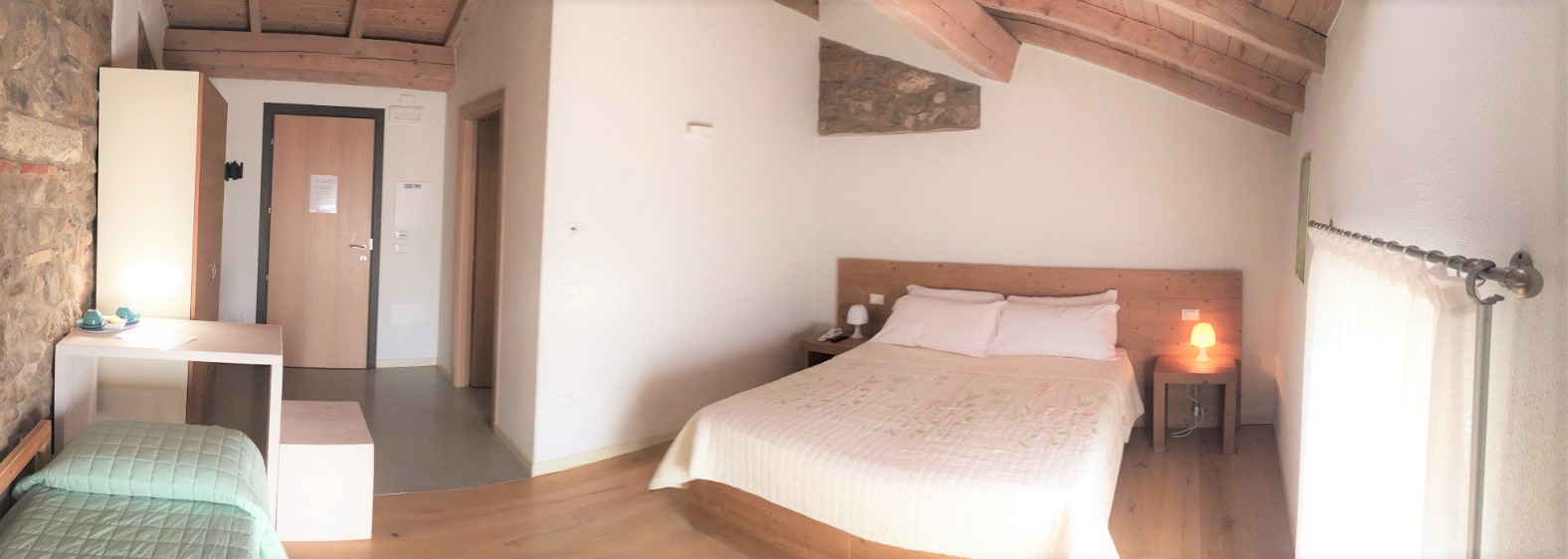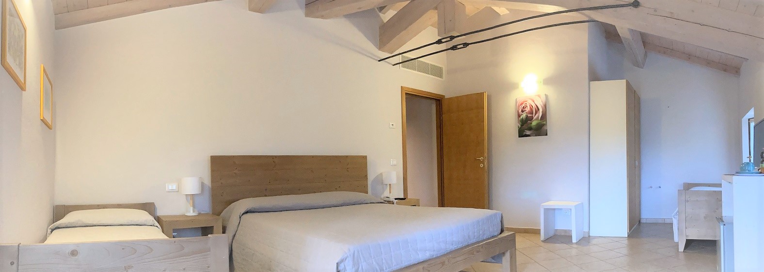 Piano secondo, camera matrimoniale e letti singoli, bagno con doccia, wifi, minibar, Tv satellitare, riscaldamento aria condizionata
